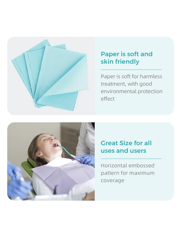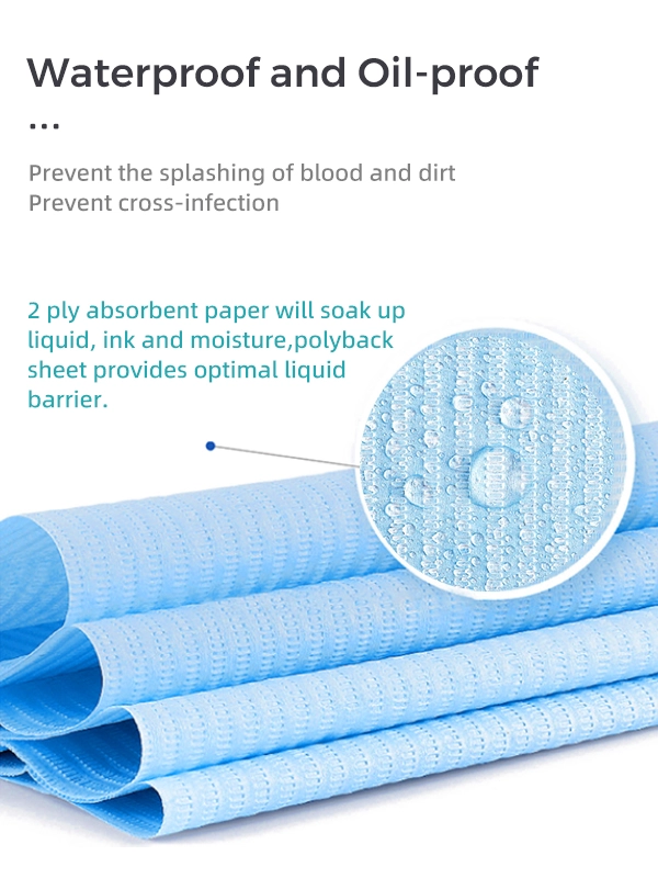 - 100% Waterproof Backing: A strong Polyethylene (PE) film barrier prevents any moisture from seeping through, protecting the patient’s clothing and the dental chair.
