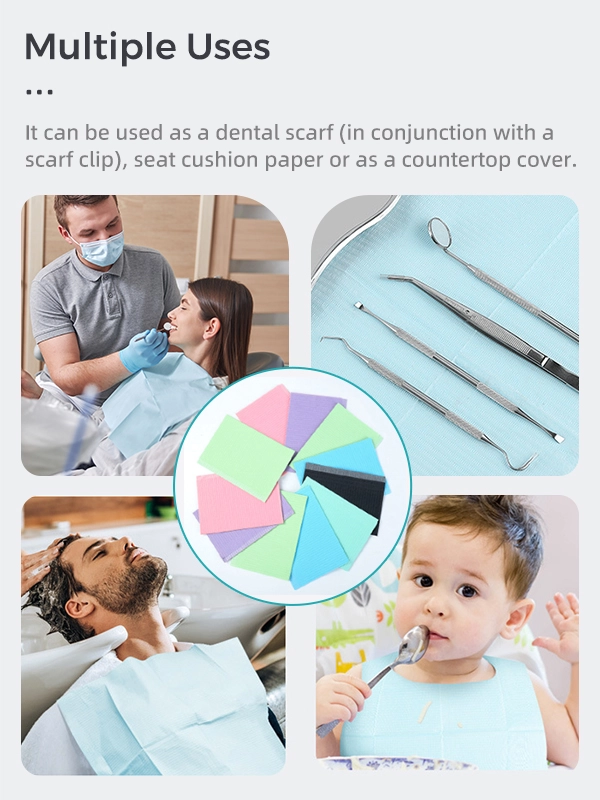 Our dental bibs provide exceptional patient comfort with their soft, hypoallergenic material, preventing irritation during care. The advanced dual-layer construction offers superior, reliable protection by effectively absorbing fluids while the waterproof backing safeguards clothing. This commitment to quality ensures a cleaner, more efficient, and professional practice environment, enhancing the overall patient experience.