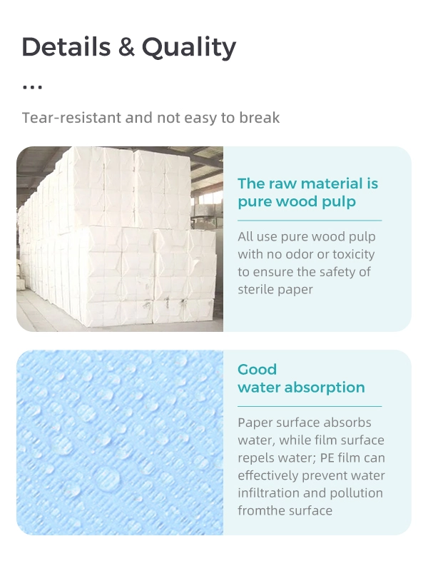 Our pouches are typically constructed from a multi-layer lamination: Medical-Grade Paper Side: A porous, high-strength paper that allows sterilant penetration and air/steam removal. Transparent Plastic Film (e.g., PET, PP, Nylon): Provides a clear view of the contents and forms a durable, puncture-resistant barrier. Tyvek® (by DuPont): A synthetic material known for its exceptional strength, low-linting properties, and high bacterial filtration efficiency. It's ideal for gas and plasma sterilization.