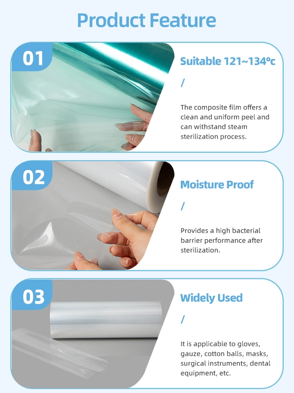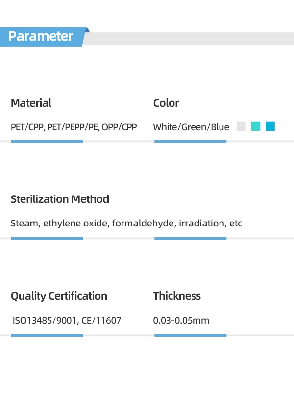 Our pouches are typically constructed from a multi-layer lamination: Medical-Grade Paper Side: A porous, high-strength paper that allows sterilant penetration and air/steam removal. Transparent Plastic Film (e.g., PET, PP, Nylon): Provides a clear view of the contents and forms a durable, puncture-resistant barrier. Tyvek® (by DuPont): A synthetic material known for its exceptional strength, low-linting properties, and high bacterial filtration efficiency. It's ideal for gas and plasma sterilization.