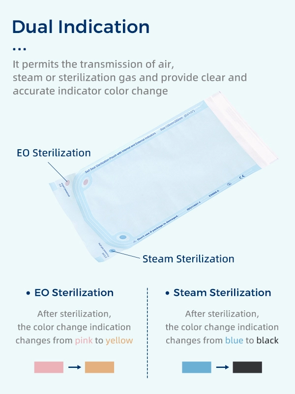 Our pouches are typically constructed from a multi-layer lamination: Medical-Grade Paper Side: A porous, high-strength paper that allows sterilant penetration and air/steam removal. Transparent Plastic Film (e.g., PET, PP, Nylon): Provides a clear view of the contents and forms a durable, puncture-resistant barrier. Tyvek® (by DuPont): A synthetic material known for its exceptional strength, low-linting properties, and high bacterial filtration efficiency. It's ideal for gas and plasma sterilization.