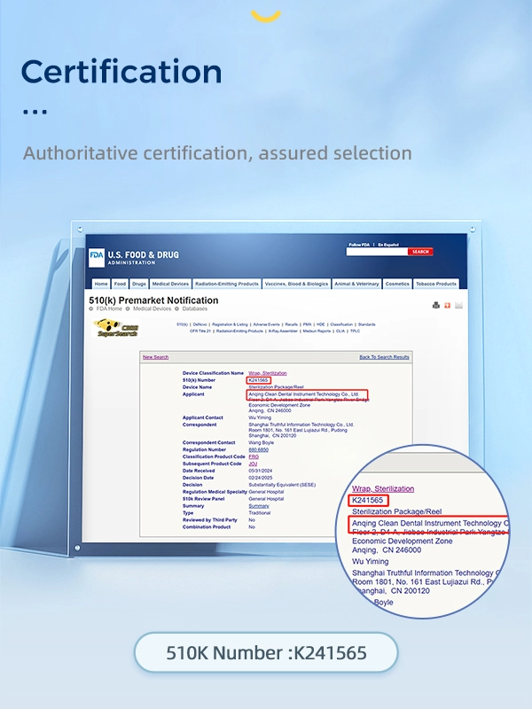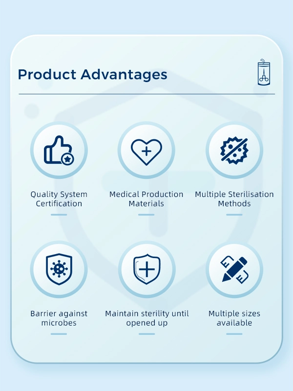 Yes. Our manufacturing facility is ISO 13485:2016 certified, which is the international quality standard for medical devices. Our sterilization pouches are cleared or approved by relevant regulatory bodies like the US FDA and comply with European Medical Device Regulation (MDR) for CE marking. We adhere to strict standards like ISO 11607 (packaging for terminally sterilized medical devices).