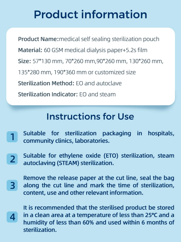 Crafted with a durable 60GSM paper layer and a 5.2S PE/CPP film lining, these sterilizable self-sealing bags offer exceptional strength and moisture resistance for medical, laboratory, and food storage applications. The innovative paper-film combination ensures reliable sterilization compatibility (e.g., autoclaving) while maintaining eco-friendly benefits. Designed for convenience, the self-adhesive seal provides airtight protection, preventing contamination and extending shelf life.
