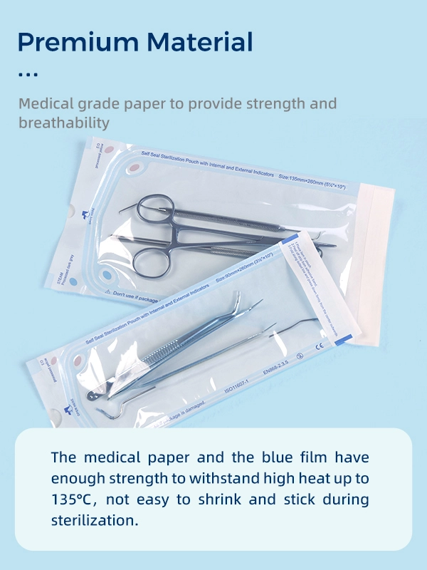Welcome to our high-performance Medical Sterilization Pouches, specifically designed to meet the rigorous demands of clinics, hospitals, and dental practices across South America. These pouches are engineered for reliability and ease of use, providing an impeccable barrier against contaminants. Crafted from high-strength, medical-grade paper and a transparent film, each pouch allows for clear visibility of contents while featuring a secure self-seal adhesive strip. This ensures your instruments remain sterile until the moment of use, making them an indispensable component for any professional medical autoclave process.